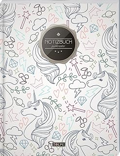 TULPE Punktraster Notizbuch A4 „C061 Einhörner“ (140+ Seiten, Vintage Softcover, Punktkariertes Papier - Bullet Journal, Dickes Notizheft, Skizzenbuch, Tagebuch, Gepunktete Seiten, Dot Grid Notebook)