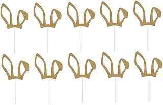 OULII 12 Stück Glitzer-Kuchenaufsätze mit Hasenohren, Oster-Kuchenaufsatz, Cupcake-Dekoration für Oster-Party (Golden)