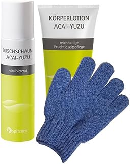 Körperlotion & Duschschaum “Acai-Yuzu“ von Spitzner im Set mit einem Gratis Massagehandschuh