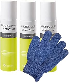 Duschschaum “Acai-Yuzu“ Sparpaket (3 x 150 ml) von Spitzner mit einem Gratis Massagehandschuh