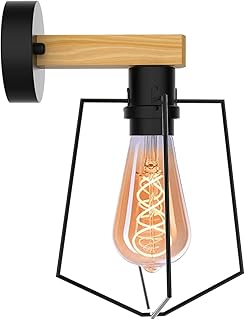 MZYOYO Vintage Wandlampe Innen,Wandstrahler Schwarz,Wandleuchte,Moderne Wandlampe im Industrie Design,Retro Lampe aus PP und Holz,max. 25W,Fassung: E27,für Wohnzimmer,Schlafzimmer,Esszimmer,oder Flur