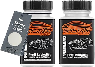 TRISTARcolor Autolack Lackstift Set für Skoda 0Q0Q Pure White Basislack Klarlack je 50ml