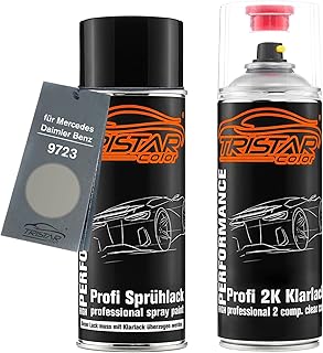 TRISTARcolor Autolack 2K Spraydosen Set für Mercedes/Daimler Benz 9723 Cubanitsilber Metallic/Pewter Silver Metallic Basislack 2 Komponenten Klarlack Sprühdose