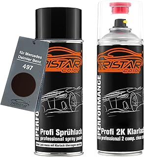 TRISTARcolor Autolack 2K Spraydosen Set für Mercedes/Daimler Benz 497 Cupritbraun Metallic/Cuprit Brown Metallic Basislack 2 Komponenten Klarlack Sprühdose