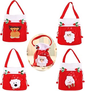 4 pcs Weihnachten Kordelzug Handtasche,Weihnachten Geschenkbeutel,Geschenkbeutel mit tollen Motiven,Weihnachtsmann,Schneemann,Hirsch,Kleiner Bär,für Süßigkeits Geschenke Dekorationen