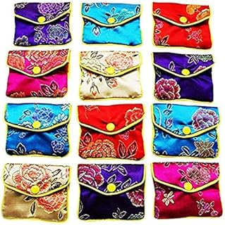 Ritapreaty Traditioneller chinesischer Brokatbeutel, 12 Stück, Schmuckrollen, Aufbewahrungstasche, Seide, Geldbörse, Geschenkbeutel, kleine Schmuck-Geschenkbeutel, 12 Stück