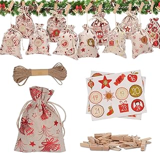Sporgo 24 Adventskalender zum Befüllen, Stoffbeutel Geschenkbeutel Weihnachten mit 1-24 Adventszahlen Aufkleber,Weihnachtskalender tüten Geschenkbeutel Jutesäckchen Bastelset für Weihnachten Geschenk