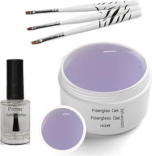 UV Fiberglas Gel VIOLET 30 ml INKL. PRIMER und PINSELSET 3 tlg. Finishgel Aufbaugel Haftgel - Top Coat - 1-Phasengel SET
