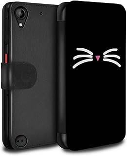 Handy Hülle Tasche kompatibel mit HTC Desire 530 Niedliche Cartoon-Katze Gesicht/Schnurrhaare Flip PU Leder Case Cover