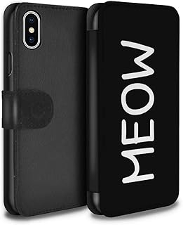 Handy Hülle Tasche kompatibel mit Apple iPhone X/10 Niedliche Cartoon-Katze MIAU/Schwarz Flip PU Leder Case Cover