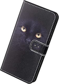 Herbests Kompatibel mit Samsung Galaxy A70 Hülle Schutzhülle Leder Handyhüllen Retro Cartoon Muster Flip Wallet Case Cover Klapphülle Ledertasche Handytasche Kartenfach Magnet,Schwarz Katze