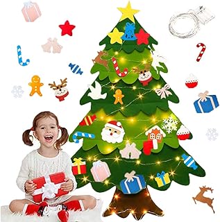 HIQE-FL Filz Weihnachtsbaum,DIY Weihnachtsbaum,Weihnachtsbaum Dekoration Hängend Dekor,mit LED Lichter für Kinder Weihnachten Geschenk