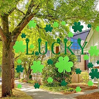 Tatuo 35 Stück St. Patrick's Day Filz Kleeblatt Lucky Hanging Ornaments St. Patrick's Lawn Hanging Decorations with 30 Yard Green Ribbon for St. Patrick's Day Indoor Outdoor Spring Holiday Decoration