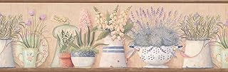 Concord Wallcoverings Retro-Garten-Bordüre mit Lavendeln und Mohnblumen, Vasen, Farben Blau, Lila, Gelb, Grün, Größe 19,1 cm x 4,5 m, AAI08013B