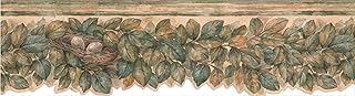 Concord Wallcoverings 5804735 Tapetenbordüre mit weichen Erdtönen, Vogelnest mit Eiern, grünen Blättern, rustikales Holzbrett, 16,5 cm x 4,5 m