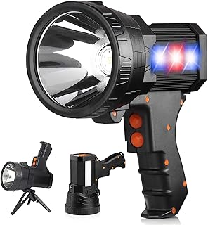 Rechargeable Super Bright LED Spotlight Super Bright 6000 High Lumens Flashlight Handheld 10000mAh Long Lasting Large Flashlight Searchlight IPX4 Waterproof Lightweight and Super Bright Flashlight.