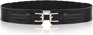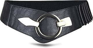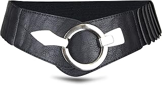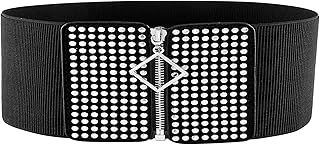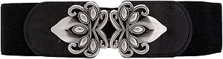 Damen Vintage Breiter Taillengürtel mit Metall Schnalle Stretch Gürtel Retro Hüftgürtel Elastische Kleidgürtel