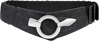 Gürtel Damen Breiter Elastischer Taillengürtel, Stretch Hüftgürtel mit Silberner Ring-Schließe